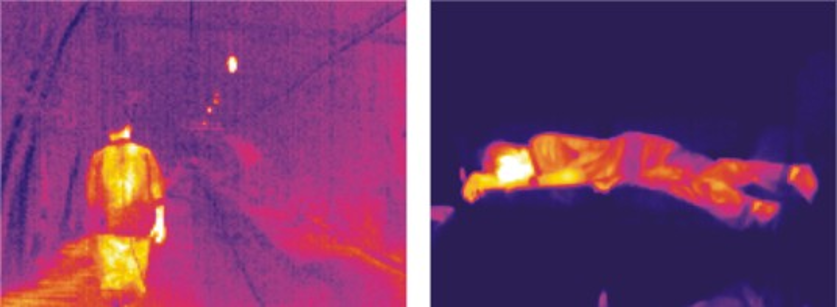發(fā)生礦難后,井下沒有光源、煙氣濃重、煤塵覆蓋住遇險(xiǎn)者或由于險(xiǎn)情阻礙,都可能妨礙救護(hù)人員發(fā)現(xiàn)遇險(xiǎn)者,搜救人員攜帶便攜式熱像儀通過偵測受傷者與周圍溫度及熱理的差異可以遠(yuǎn)距離快速定位遇難人員的準(zhǔn)確位置,形成直觀的人途熱圖像。